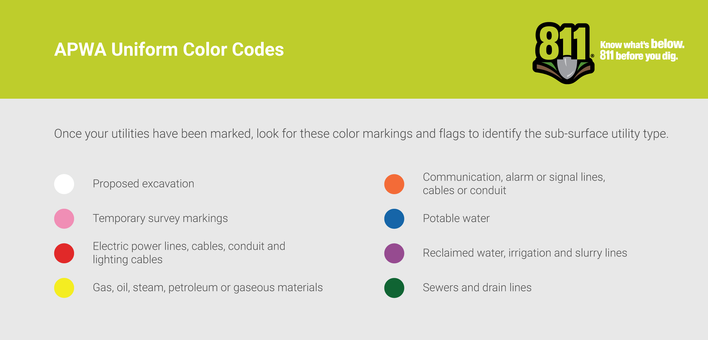 - It doesn’t matter how shallow you’re planning to dig! Always contact 811 at least 2 working days prior to starting your project.